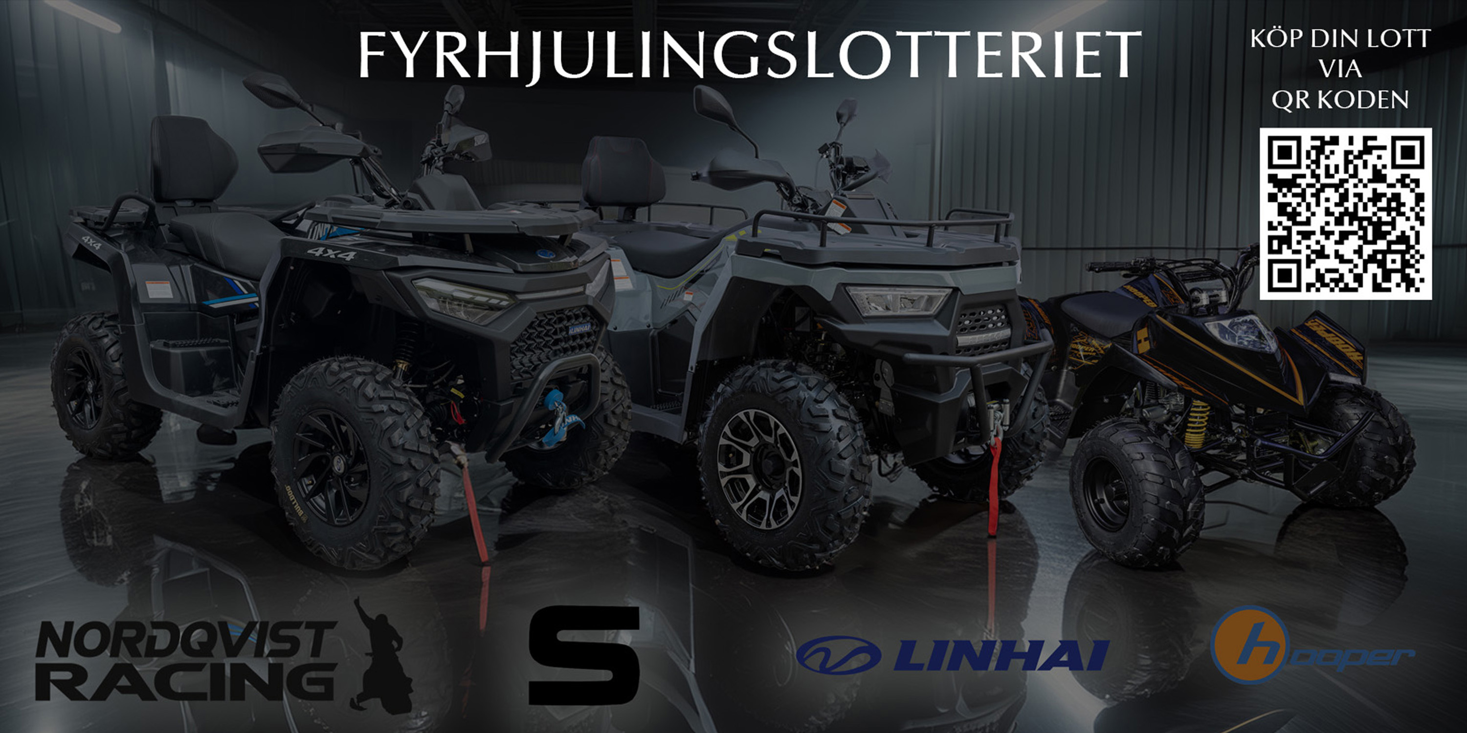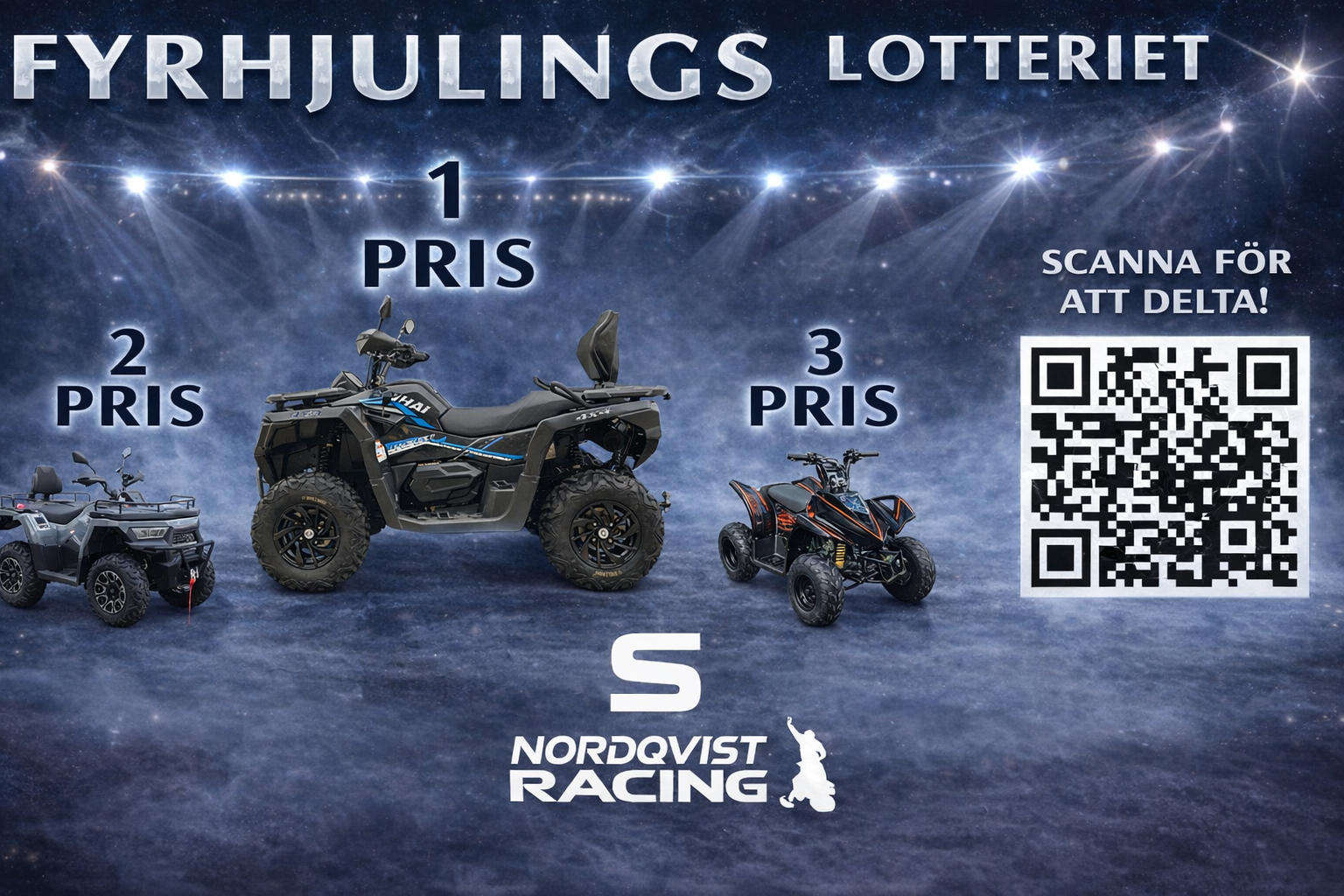 Vi arrangerar Fyrhjulingslotteriet, där du har chansen att vinna en av tre olika fyrhjulingar.